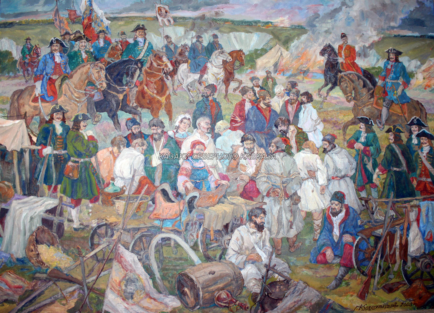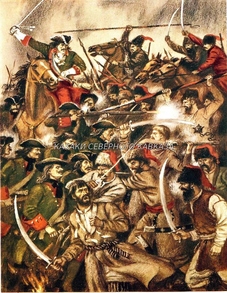 | Игнат Некрасов Донской казак Игнат Некрасов родился около 1660 года на Верхнем Дону в старинном казачьем городке Глубинском. Боевое крещение получил еще будучи в юных годах, участвуя в походах донских казаков против турок и татар. В зрелые годы участвовал в Азовских походах юного царя Петра Алексеевича против турок. Среди Донских казаков пользовался непререкаемым авторитетом, за что был избран атаманом Есауловского городка. С самого начала Булавинского восстания 1707-1708 годов Игнат Некрасов примкнул к Кондратию Булавину и принял самое деятельное участие в нем. Когда в конце марта 1708 года Кондратий Булавин в Пристанском городке на Хопре созвал Казачий Круг, на котором объявил о своем походе на Черкасск против Войсковой старшины, одним из первых на его зов откликнулся атаман Есауловского городка Некрасов. В апреле 1708 года Некрасов участвовал во взятии булавинцами столицы Войска Донского Черкасского городка, а также руководил 6 мая казнью свергнутого Войскового атамана Лукьяна Максимова и приближенных к нему старшин. После провозглашения 9 мая Кондратия Булавина атаманом Войска Донского, Некрасов был послан во главе повстанческого войска силами в 3-5 тысяч человек на Хопер, где намечалось создание новых очагов восстания. Присоединяя новые отряды казаков, Игнат Некрасов дошел до Пристанского городка на Хопре, откуда повернул к Волге. 13 мая 1708 года он вместе с Бузулукским атаманом Иваном Павловым легко захватил волжский город Дмитриевск и, оставив в нем небольшой гарнизон, направил все имеющие в его распоряжении сила на город Саратов. С 26 по 30 мая восставшие безуспешно осаждали крупный укрепленный город. Но овладеть столь сильной крепостью сравнительно небольшими силами мятежным атаманам не удалось. Тогда обойдя Саратов, Некрасов и Павлов двинулись вниз по Волге и взяли в осаду сравнительно небольшой в то время город Царицын. На выручку Царицыну из Астрахани был послан полк во главе с полковником Бернером. Узнав о подходе полка регулярных войск, атаман Некрасов двинулся навстречу ему и 7 июня 1708 года в коротком кровопролитном бою уничтожил его. Через несколько дней был взят и Царицын. В городе тут же было установлено казачье самоуправление. Воевода Афанасий Турчанинов, находящийся при нем подьячий, а также несколько стрелецких старшин были обезглавлены. Для очистки Волги от восставших был двинут карательный корпус князя Петра Хованского, который только что подавил Башкирское восстание. К его войскам присоединился калмыцкий отряд хана Аюки. Получив известие о гибели в Черкасске руководителя восстания Войскового атамана Кондратия Булавина, Некрасов был в ярости. «Если вы не изволите оповестить, за какую вину его убили, - пишет Игнат Некрасов убийцам атамана в Черкасск, - и его стариков не освободите, и если не будут отпущены казаки, то мы всеми реками и собранным войском будем к вам идти в Черкасск ради полного розыску». Некрасов спешно созвал круг казацких старшин, на котором предложил немедленно совершить рейд на Черкасск, - «взяв всю артиллерию и все кони» и покарать изменников старшин. Этому воспротивился Бузулукский атаман Иван Павлов, который настаивал на продолжении столь удачно складывающийся рейд по Волге и призывал казаков «идти плавною (сплавляться на судах)» и выйти в море. Во время этого Круг произошла серье